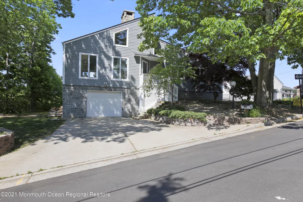 Mountain top home that has been custom built. Ocean, NYC, and beach views visible throughout the home! Two decks perfect for enjoying a sunrise or sunset outdoors. Spacious family room, vaulted ceilings, hardwood flooring, and a large stone fireplace. Open concept kitchen with breakfast bar, granite countertops, stainless steel appliances, and plenty of lighting. In addition, enjoy a master bedroom with sliding door access to the deck, a full bath that includes a Jacuzzi and glass shower. First floor holds an additional two bedrooms and a bath. Third floor loft style can be used as spare room or office space with a private deck and unobstructed views of Sandy Hook. Lower level holds a bedroom, full bath, laundry, play room or in-law suite. Hartshorne Woods entrance across the street for hiking and biking!