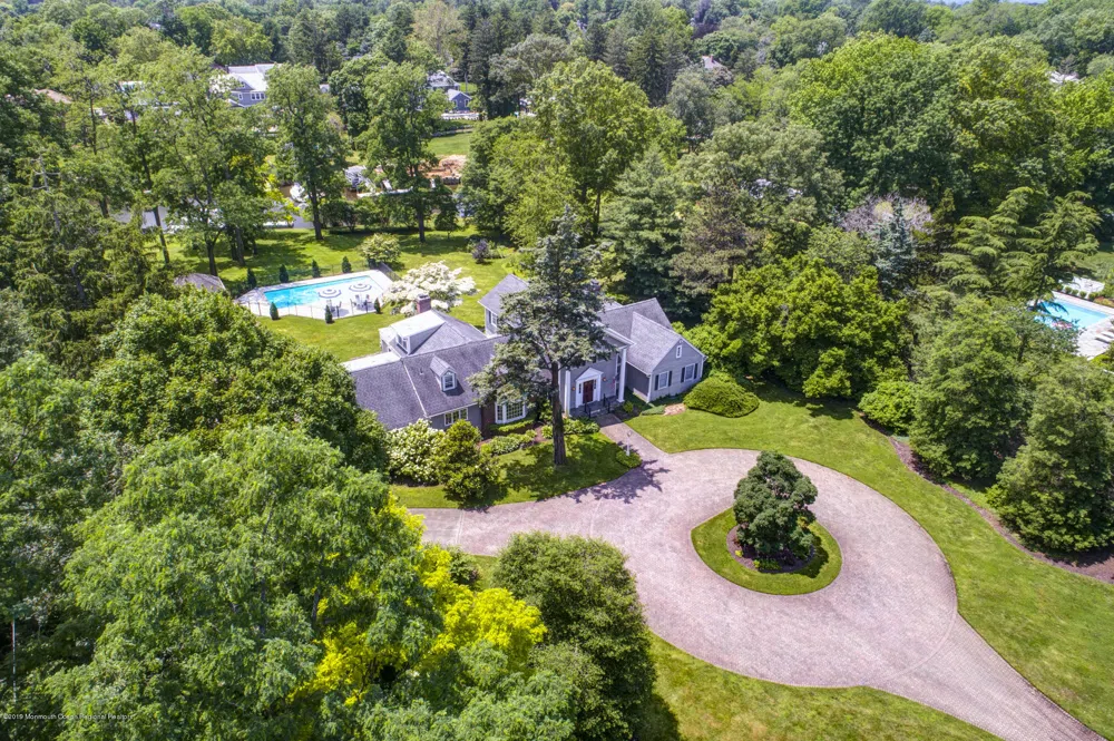 Exceptional opportunity to own almost 2.2 acres on the water in Rumson that does not require flood Ins The brick paver driveway is 200' long with a circle at the top for plenty of parking in front of this classic 5,200 sq/ft Rumson colonial. Expansive lawns and mature gardens were lovingly tended by a master gardner, all under sprinklers fed by your own private well. Enjoy the park like property sunning by the huge concrete pool with wrap-around patio that comes fully fenced in or, sitting on the 16' x 24' screened in porch with custom built sliders on all three sides to make it a true three season room. 130' of bulkhead on the canal hosts 60' of floating dock for all your water toys. Inside you will find hardwood throughout the 1st floor, and gas fireplaces in the family and living rooms. Attached/direct entry temperature controlled, green-house with water, sink, gas heat and auto-venting ceiling glass. The garage has a 3rd bay being used a workshop or could be converted to a car bay.