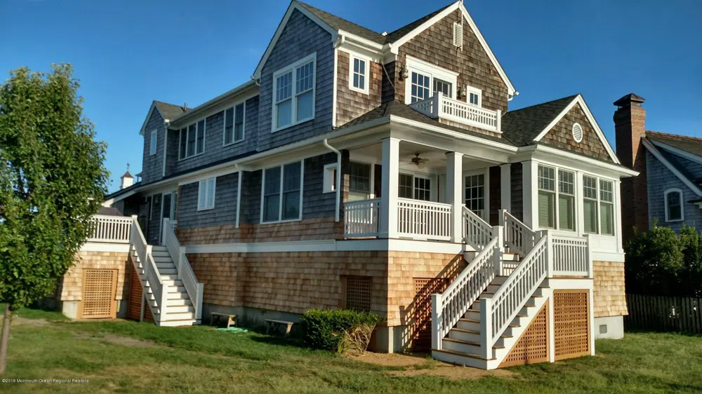 Enjoy spectacular sunsets and beautiful bay views in one of Mantoloking's most sought after neighborhoods. The home is a John Lederer design and constructed by Dearborn Builders. This 4 bedroom, 2 1/2 bath home is situated on a 75'x126' oversized lot with plenty of room on the north side of the house for a pool. The home was raised post Sandy with an oversized garage, basement and heated work shop with ample storage, vinyl dock and riparian grant. Lots of outside space to enjoy with two covered porches and a large open deck. Just a short walk or bike ride to South Beach.